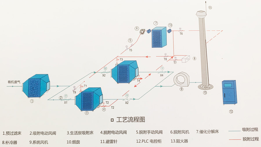 活性炭吸附+催化分解原理流程示意图